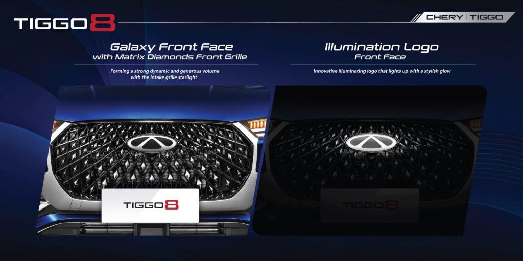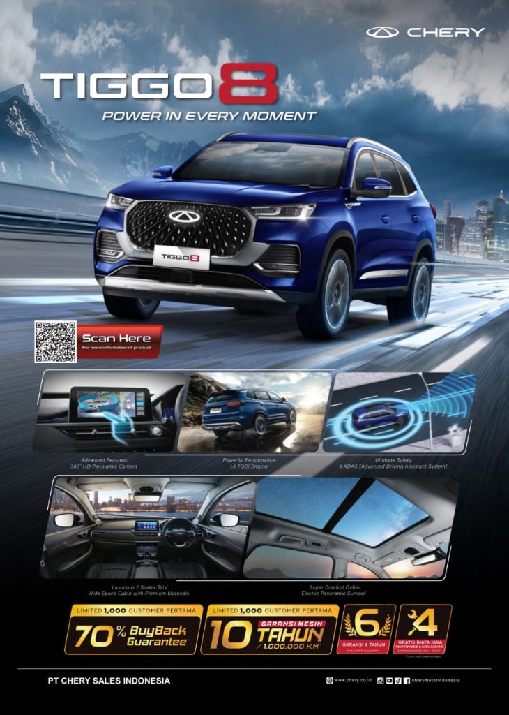 galaxy front face 9 adas 8 airbags TIGGO 8 Otr Jakarta TypeHarga OTRTiggo 8 Luxury359.500.000Tiggo 8 Premium389.500.000 DP rendah dan cicilan bunga 0% Paket Gratis Service untuk pembelian unit baru Melayani pembelian Cash maupun Kredit! Melayani seluruh area JABODETABEK Info Promo & Test Drive bisa whatsapp langsung! 6 Airbag ADAS (Advanced Driver Assistance System) WARNA EKSTERIOR INTERIOR